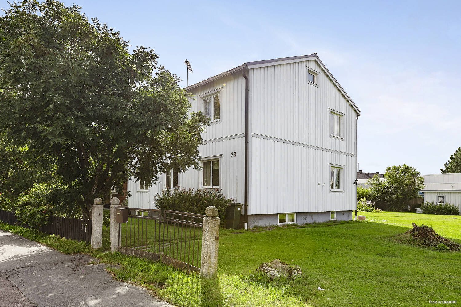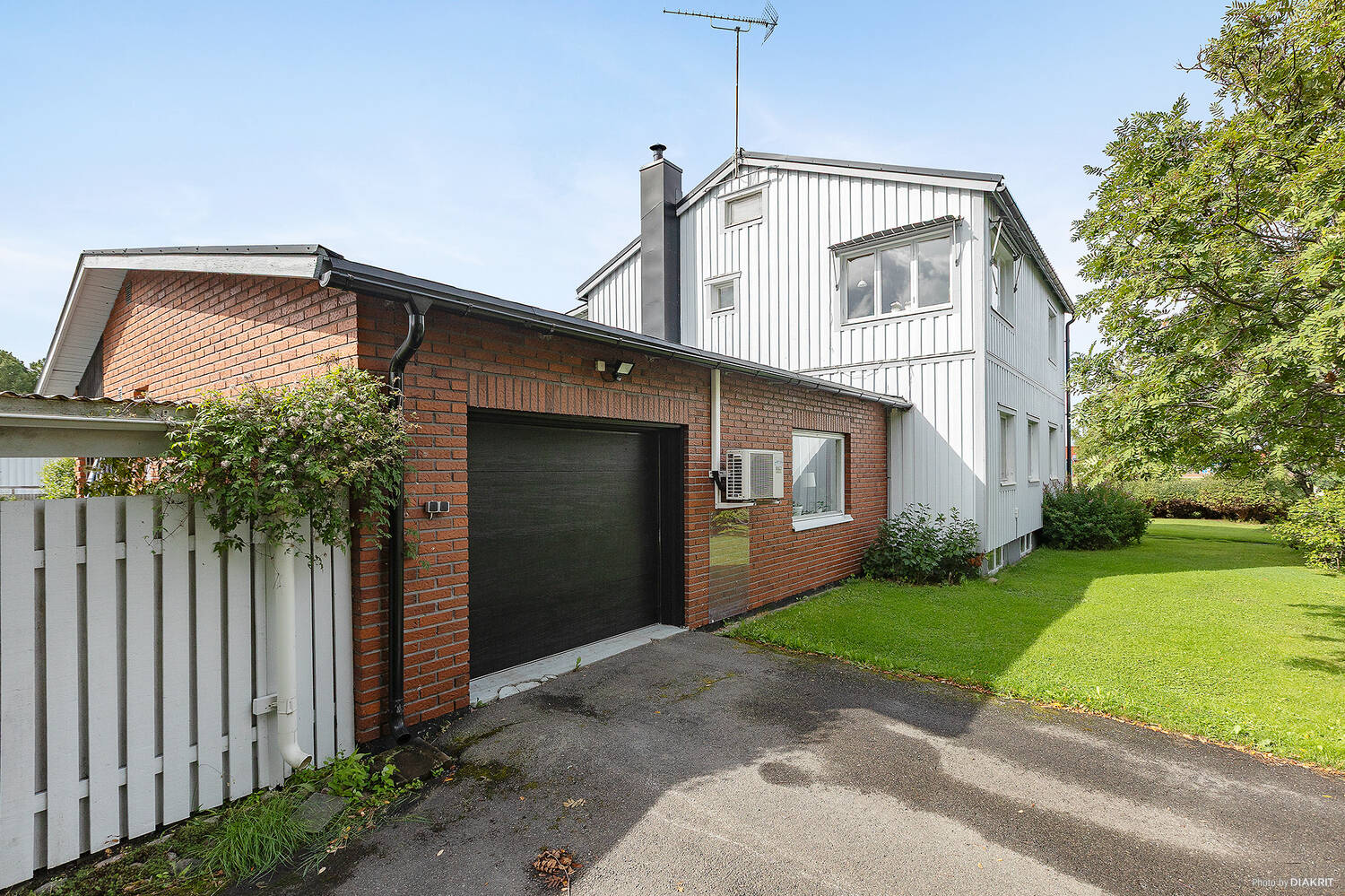 Uppfarten rymmer två bilar bilar och huset värms upp med fjärrvärme.